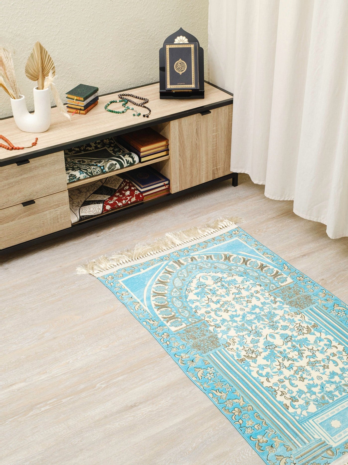 Tapis de prière épais Rauda Premium | Motif floral haute densité | Toucher velours ultra-doux