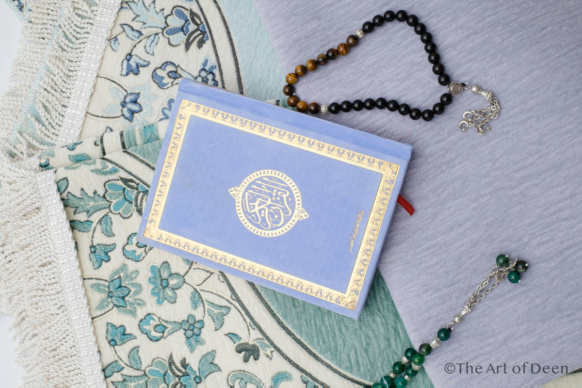 Coran élégant en velours avec broderie dorée – Édition en écriture arabe Uthmani (14×20 cm)